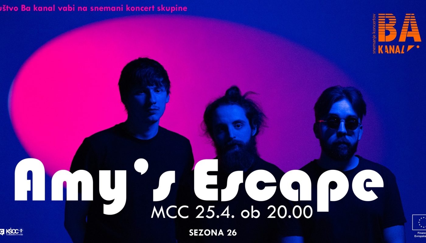 Tukaj je že prvi špil nove koncertno-snemalne sezone 2026 društva Ba kanal! Z nami bodo (skoraj) lokalci Amy’s Escape! Če bi tudi vi na stojnici glasbenega sladoleda naročili pol pol alt-punk, potem špila nikakor ne smete zamuditi! Tudi zvrhan kornet glasbene scene in produkcije vam ne uide! Lepo vabljeni vsi glasbeni in koncertni navdušenci!***
