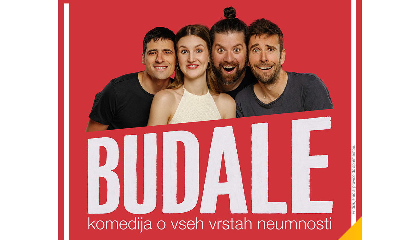 Komedija Budale spregovori o vsem, v šovu hitrih prizorov in bliskovitih menjav kostumov. Humoristična superekipa znanih obrazov iz najuspešnejših slovenskih gledaliških projektov, TV serij in filmov, v zasedbi: Jernej Kogovšek, Mario Ćulibrk, Goran Hrvaćanin in Lucija Harum/Lara Fortuna, vam bo pričarala večer pristne, do konca smešne, neomejene omejenosti. Nasmeh na usta in brez skrbi – z vami so BUDALE.